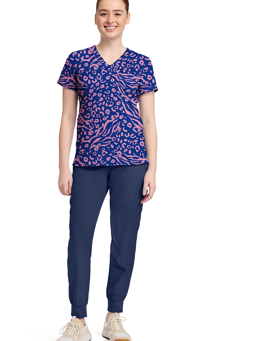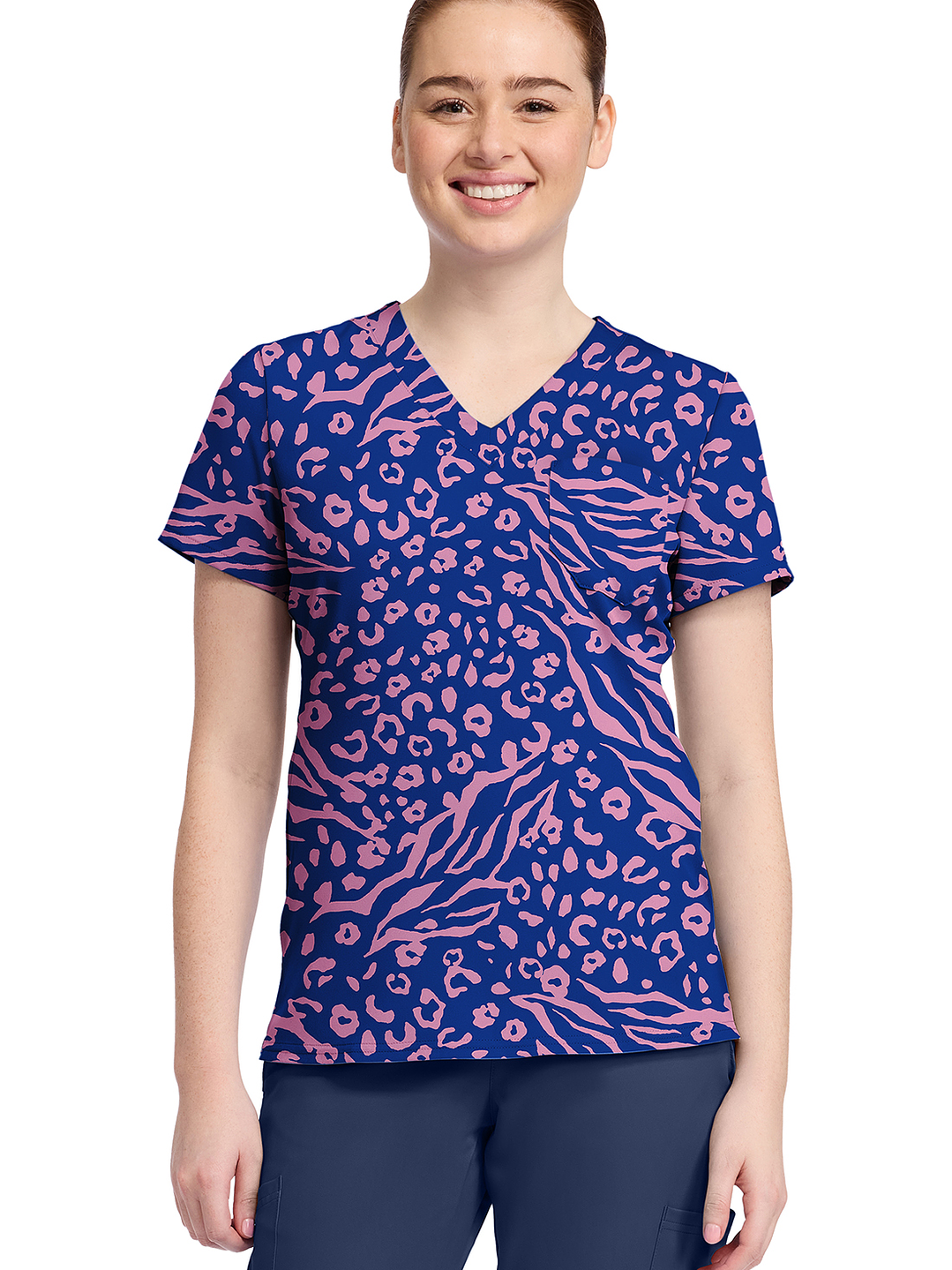 El uniforme con escote en V con estampado añade un toque vibrante a tu guardarropa con diseños divertidos y de temporada, con una silueta favorecedora. Hecha con tela dobby súper cómoda de Med Couture, que puede estirarse en los 4 sentidos, control de humedad y fácil cuidado. Tiene un solo bolsillo, mangas cortas, ventilaciones laterales y costura curvada. Largo centro espalda: 66 cm.📏 Guía de Tallas